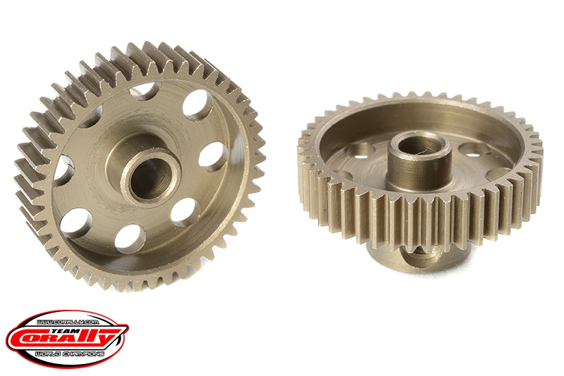 Krátké provedení, materiál tvrzená ocel, 44 zubů, modul ozubení 64DP. Pro hřídel motoru o průměru 3.17 mm (1/8 in). Pastorky TEAM CORALLY jsou vyráběny frézováním a následně tvrzeny, čímž je zajištěna vysoká přesnost ozubení. Všechny pastorky TEAM CORALLY jsou vyrobeny v EU.