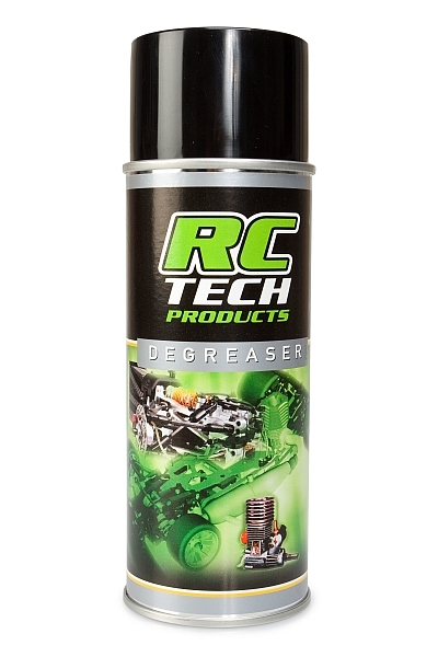 RC Tech "odmašťovač" byl vyvinut profesionálními závodníky a modeláři. Může být použit pro čištění a odmašťování všech kovových a většina syntetických a plastových dílů. Mimo jiné také k použití u elektro motorů, brzdových a závěsných dílů, kuličkových ložisek, převodových dílů jako jsou diferenciály, ozubená kola, univerzální klouby, řetězy, apod. Může být také použit jako čistící prostředek na povrchy, které je třeba pozdeji lepit.