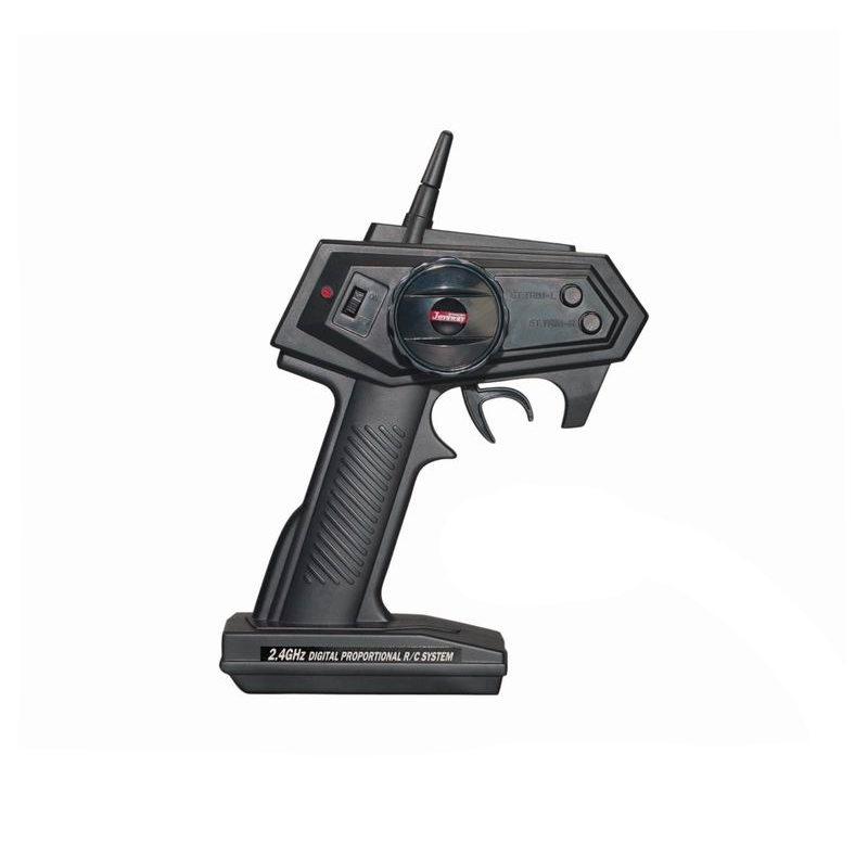 RC set obsahuje: hotový model připravený k plavbě, dvoukanálový pistolový vysílač, pohonný akumulátor 7,4V/800 mAh, síťový nabíječ pro pohonný akumulátor, 9V destičkovou baterii, plastový stojánek a návod k obsluze.