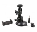 Víceúčelový držák s přísavkou do vozidla pro mobilní telefony (4–6") nebo akční kamery. Umožňuje nastavení pod více úhly pro ideální záběr. Stabilní uchycení na sklo nebo hladký povrch zajišťuje bezpečné použití při jízdě. Ideální pro natáčení, navigaci nebo hands-free volání během cest.
