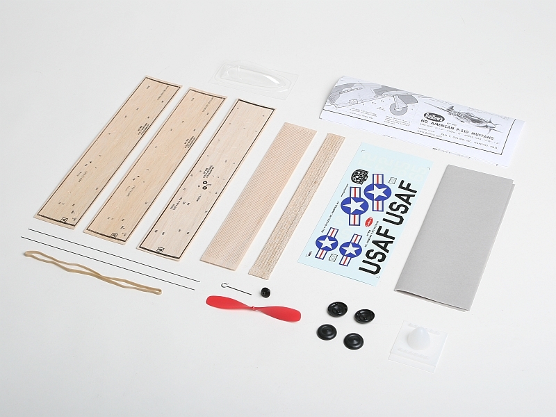 Stavebnice volně létající polomakety amerického stíhacího letadla určená pro pohon gumovým svazkem. Model je jednoduché klasické celobalsové konstrukce v rozsypu s předseknutými dřevěnými díly, maketovými doplňky z vakuově tvářeného plastu a plastovými díly zhotovenými vstřikovým lisováním. Vzhledem k tomu, že jde o velmi malý - byť jednoduchý - model, měli byste již mít předchozí zkušenosti s klasickou stavbou a zalétáváním modelů poháněných gumou.