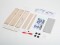 Stavebnice obsahuje: balsové předseknuté díly, balsové nosníky, vakuově lisované díly (kryt motoru, kryt kabiny), plastovou vrtuli s hřídelí a hlavicí, gumový svazek, kola, ocelovou strunu na podvozek a další drobné díly, potahový papír, aršík mokrých obtisků, stavební plán.