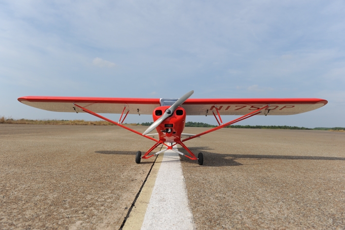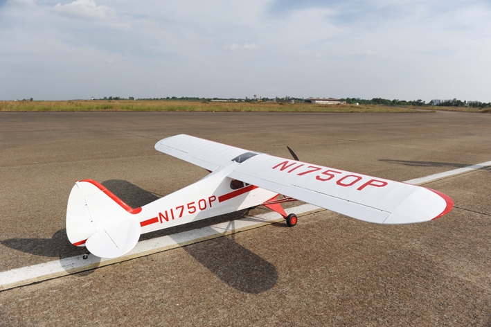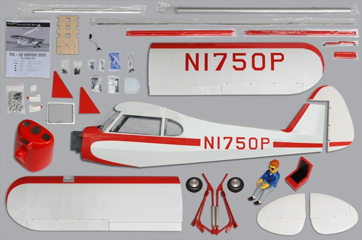 Polomaketa amerického sportovního hornoplošníku pro pohon benzínovým motorem 22-35 ccm nebo střídavým elektromotorem třídy AXI 5330 s 10S LiPo. Super Cub je vhodný jako první opravdu obří model s benzínovým motorem - dokončení modelu jde rychle, nebudete potřebovat drahá supersilná serva ani extra nákladnou RC soupravu; a letové vlastnosti klasického kabinového hornoplošníku s přiměřeně robustním odpruženým podvozkem jsou příjemné a bez záludností.