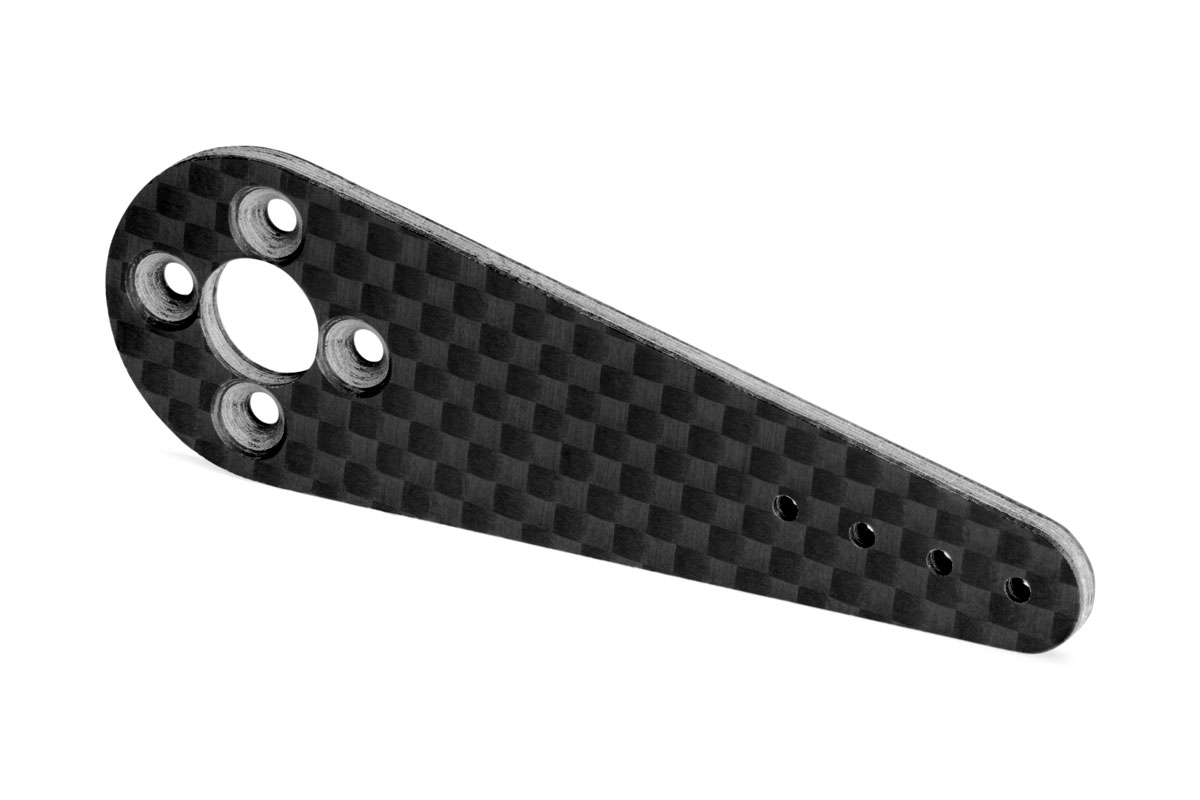 Jednoramenná univerzální uhlíková páka pro serva 66x22.5 mm, středový otvor 7 mm. Pro našroubování na standardní plastové kotouče serv.