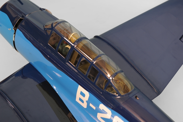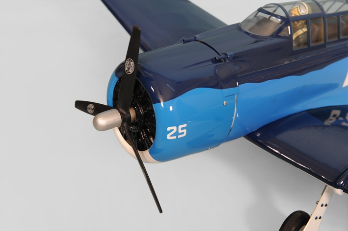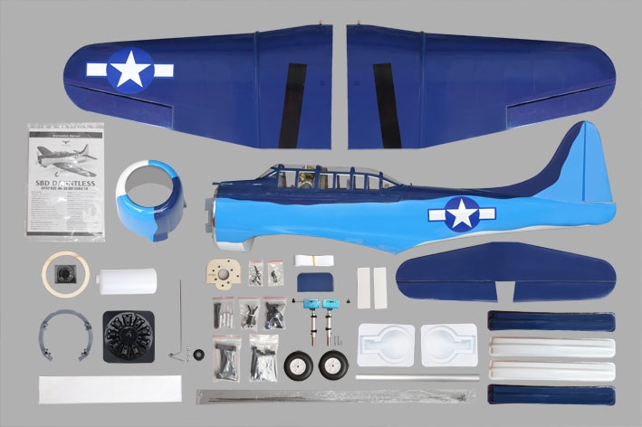 Polomaketa legendárního amerického námořního střemhlavého bombardéru pro dvoudobé motory 7,5-8,5 ccm, čtyřtakty 8-10 ccm nebo střídavé elektromotory třídy AXI 4120. Trup modelu je klasické celobalsové konstrukce s laminátovým motorovým krytem. Jednodílné křídlo s polosouměrným profilem je rovněž klasické konstrukce s torzní skříní; k trupu se upevňuje polyamidovými šrouby. Křidélka a klapky jsou ovládány vždy 2 nezávislými servy. Ocasní plochy jsou klasické celobalsové. Celý model je potažen nažehlovací fólií Oracover v kombinaci tmavě modré, světle modré a bílé. Model je dodáván se zatahovacím mechanickým podvozkem.