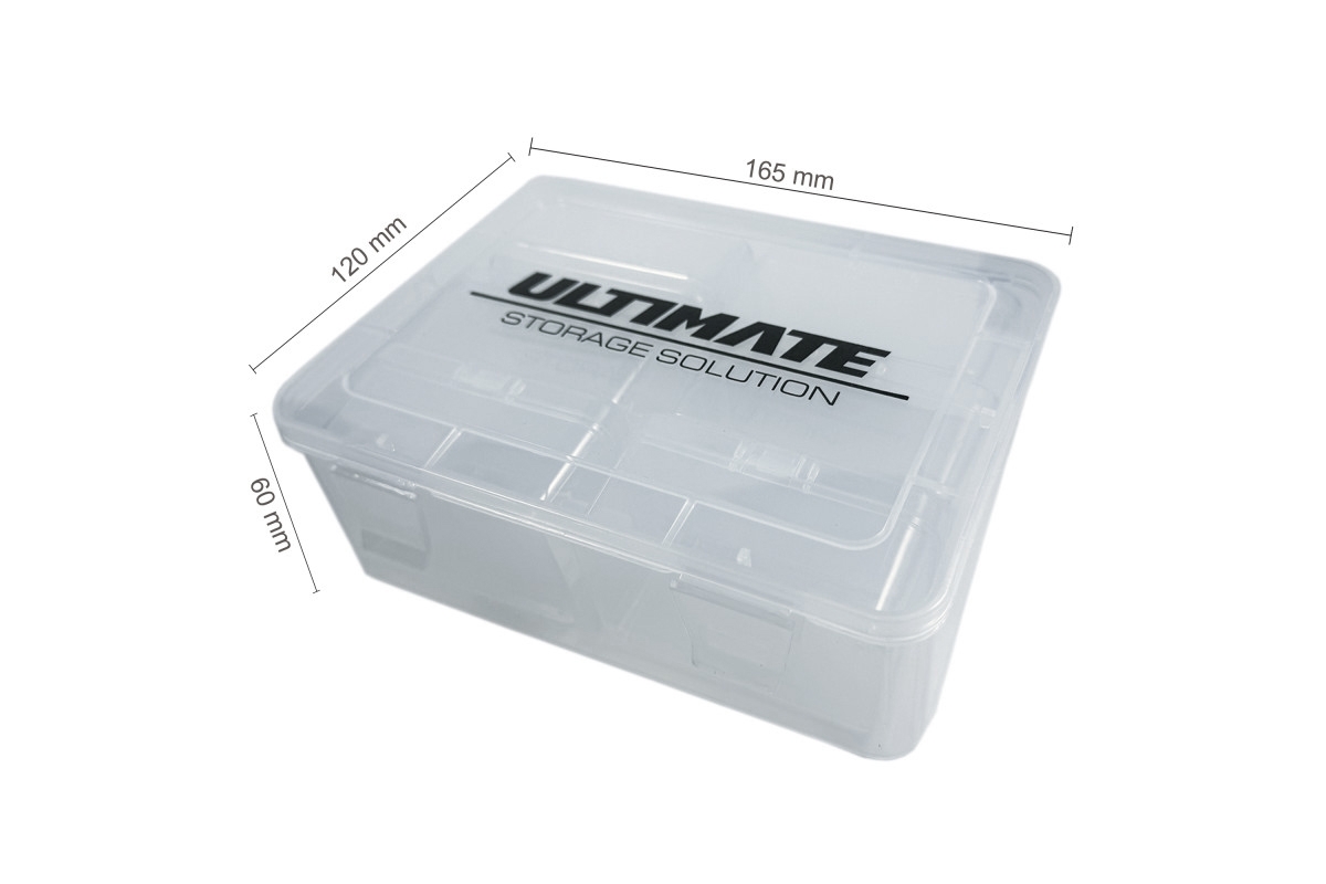 Pevný, odolný, průsvitný box o rozměrech 165x120x60 mm obsahuje 6 vnitřních boxů o rozměrech 75x50x35 mm se samostatným uzamykatelným víkem pro rychlé a snadné uložení dílů.