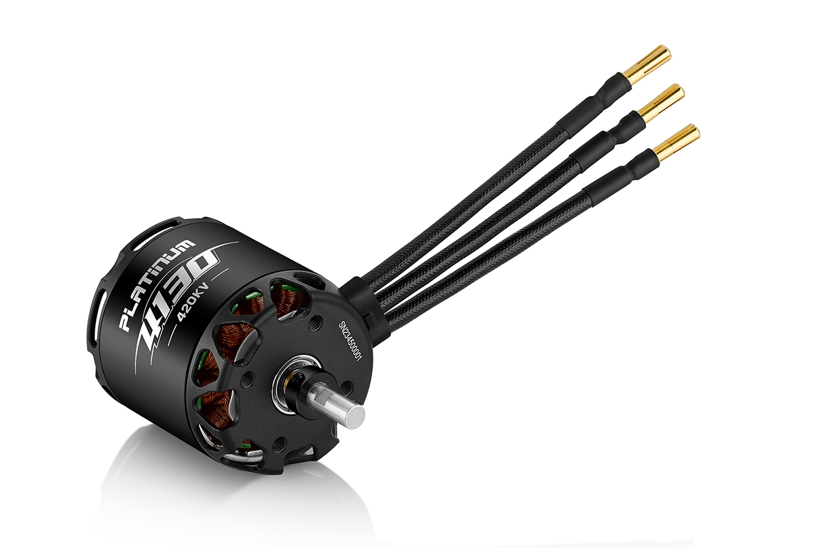 Motory PLATINUM řady 4130 jsou vysokovýkonné bezkomutátorové (střídavé, "brushless") čtrnáctipólové elektromotory s rotačním pláštěm ("outrunner") s vynikajícími elektrickými vlastnostmi, propracovanou konstrukcí a špičkovým výrobním zpracováním. Hřídele z tvrzené oceli a kvalitní ložiska zajišťují vysokou životnost, jakostní materiály použité pro zhotovení statoru u rotoru zaručují rovněž výborné výkonové parametry při vysoké účinnosti. Jsou to nízkootáčkové motory s velkým kroutícím momentem zvládající vrtule o velkém průměru i stoupání bez potřeby převodovky. Systém označování motorů: xxYY SL-zzzz xx - průměr statoru v mm YY - délka statoru v mm SL - bezsenzorový (SensorLess) motor zzzz - počet otáček na volt (ot./min/V), „KV“
