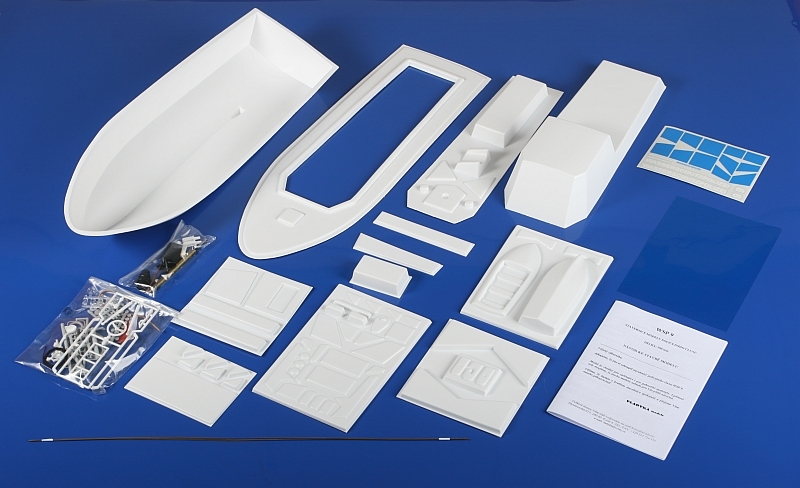 Stavebnice obsahuje vakuově vytvarované díly trupu, paluby, kabiny, podstavce, díly pro uložení jednotlivých částí RC soupravy, díly pohonné jednotky (kormidelní ploutev, kormidelní páka, třílistá lodní vrtule, hřídel, pružná spojka) a další díly pro dokončení modelu (záchranný člun, lodní jeřáb, záchranné kruhy, zábradlí, kotva, kotevní vrátek, světlomet, svítilny, radar, klakson, žebřík, stěžeň, stožár s vlajkou, křížové vazníky, průvlaky a barevná samolepka s okénky a názvem lodi).