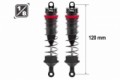 Celohliníkové olejové tlumiče pro modely 1/8 a podobné, Celková délka mezi čepy je 120mm, průměr pístku je 16mm. Sada obsahuje: tři páry pružin: měkké, střední a tvrdé; horní i spodní upevňovací materiál.