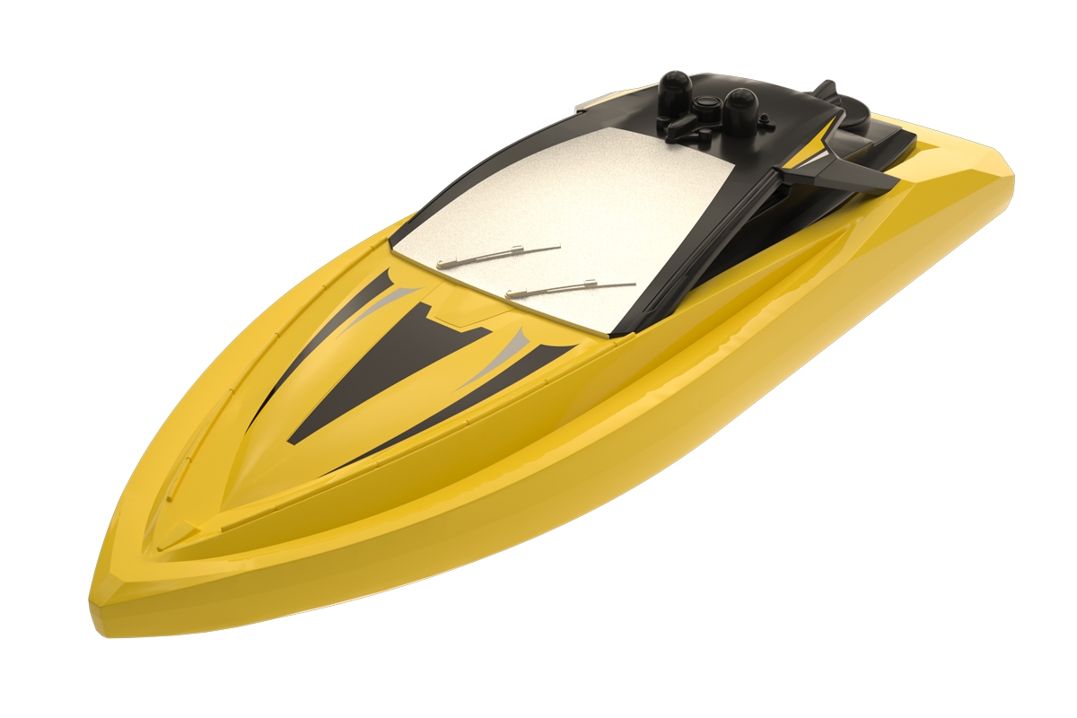 Miniaturní dvouhřídelový rychlostní člun o délce 230 mm. Aku Lipo 650mAh/3,7V, motor velikosti 130, signalizace nízkého stavu akumulátoru. Kompletní RC set s dvoukanálovou RC soupravou 2,4GHz s dosahem až 150m(2XAA není součástí balení).