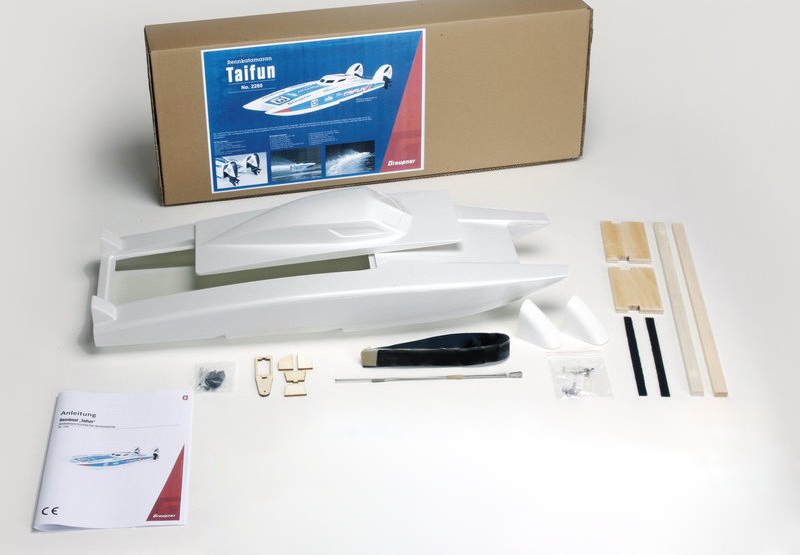 Nová závodní kočka s názvem Typhoon je čistokrevným závodním katamaránem se dvěma přívěsnými speciálními třídami. Motory Graupner Inline Brushless Motors ji urychlují na maximální rychlost vyšší než 70 km / h. Jako zdroj napájení je k dispozici 2x 3S Lipo.
