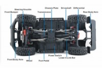 • 2,4GHz 6kanálové rádio s tlačítky pro ovládání serva převodovky, 2 serv pro ovládání uzávěr diferenciálů a LED světelný modul.
