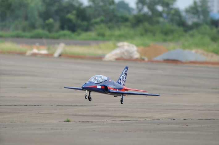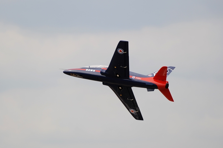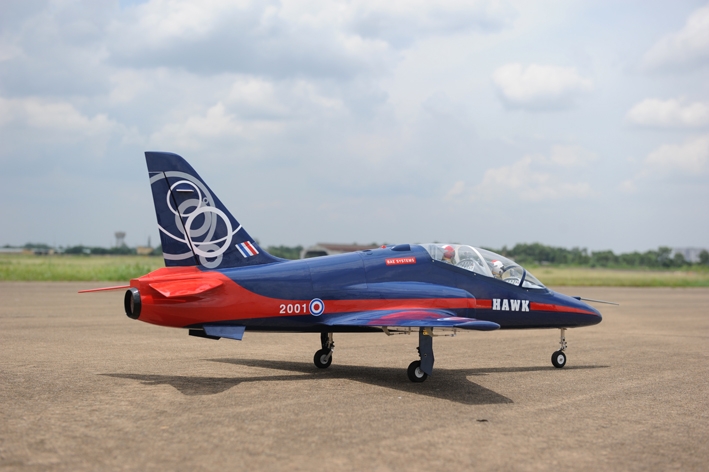 Polomaketa britského cvičného proudového letounu pro pohon dmychadlem o průměru 120 mm se střídavým motorem a 12s Li-poly akumulátorem pro zkušené piloty "jetů".