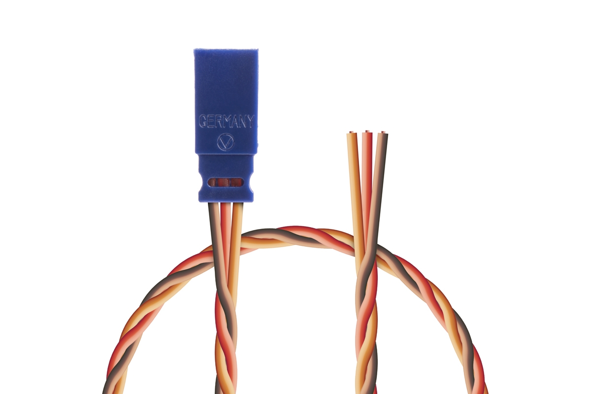 Kroucený velmi silný servokabel s konektorem (protikus) JR o délce 300 mm se silikonovou izolací, průřez vodičů 0,35 mm2. Vyrobeno v Německu.