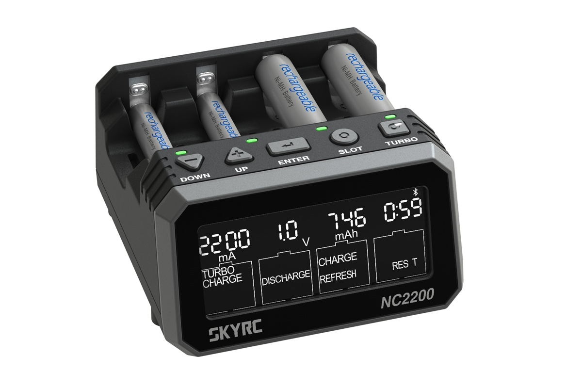 NC 2200 umožňuje současně – a přitom nezávisle - nabíjet nebo vybíjet až čtyři různé tužkové nebo mikrotužkové akumulátory. Parametry probíhajícího procesu (nabíjecí/vybíjecí proud, nabitý/vybitý náboj, napětí akumulátoru, vnitřní odpor, uplynulý čas) jsou průběžně zobrazovány pro všechny kanály na LCD displeji. NC2200 umožňuje také synchronní provoz kanálů – stačí vložit 2-4 akumulátory stejného druhu, zadat parametry nabíjení nebo jiného provozního režimu pro první kanál a poté jedním dlouhým stiskem tlačítka odstartovat stejný proces i pro všechny ostatní „obsazené“ kanály.
