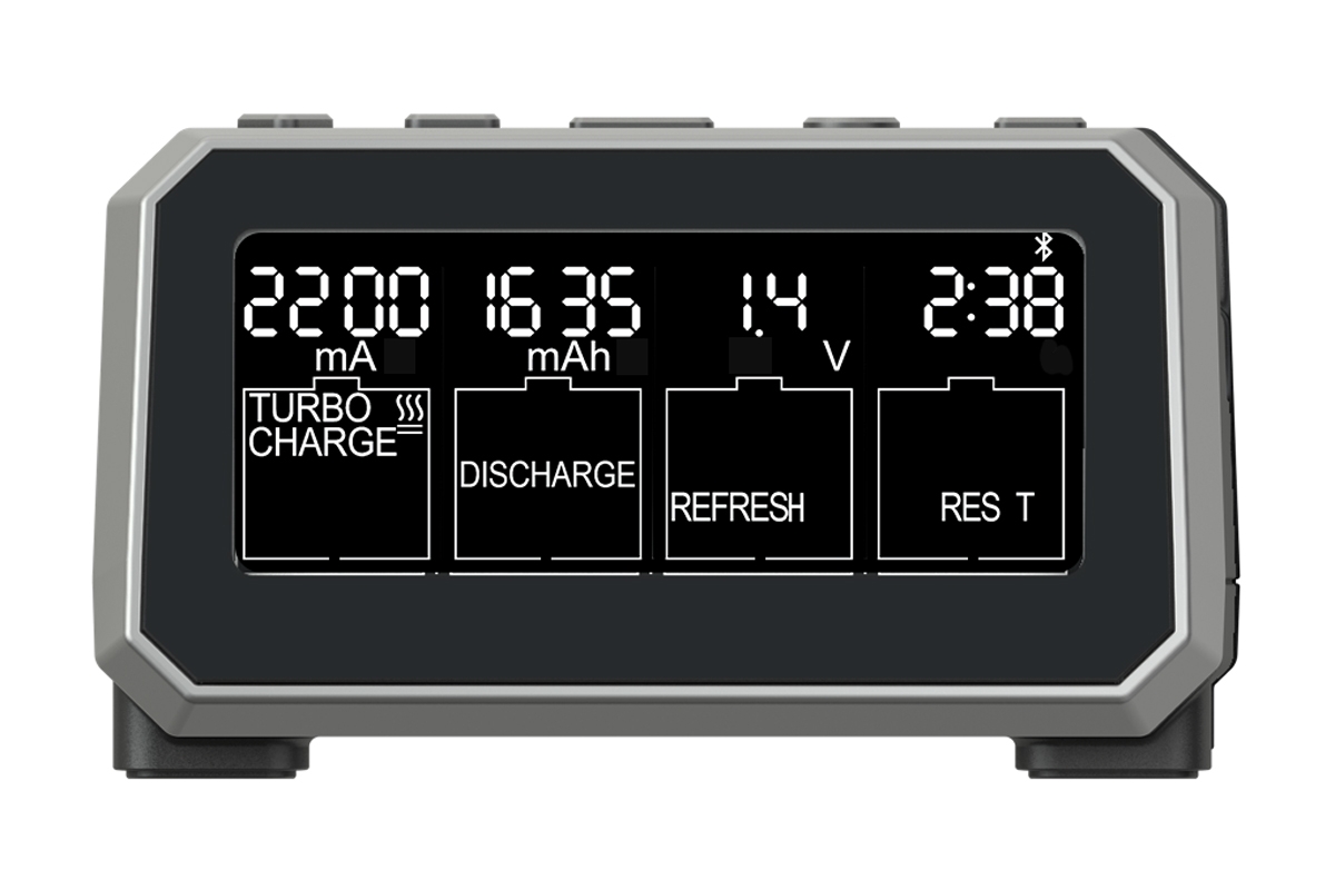 Čtyřkanálový nabíječ jednotlivých článků velikosti AA a AAA NiMH/NiCd proudem 0,2-2,0 A se síťovým napájením. Inteligentní provozní režimy nabíjení, rychlonabíjení, vybíjení, ořivování+analýz a formování poskytují komplexní péči o akumulátory. Přehledný LCD displej se zobrazením napětí, proudu, kapacity a času. Možnost bezdrátového ovládání v mobilní aplikaci (po připojení doplňkového Bluetooth modulu).
