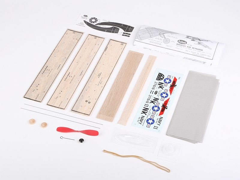 Stavebnice obsahuje: balsové předseknuté díly, balsové nosníky, vakuově lisované díly (přední část krytu motoru, kryt kabiny), plastovou vrtuli s hřídelí a hlavicí, gumový svazek, vysoustružená balsová kola, ocelovou strunu na podvozek a další drobné díly, potahový papír, aršík mokrých obtisků, stavební plán.
