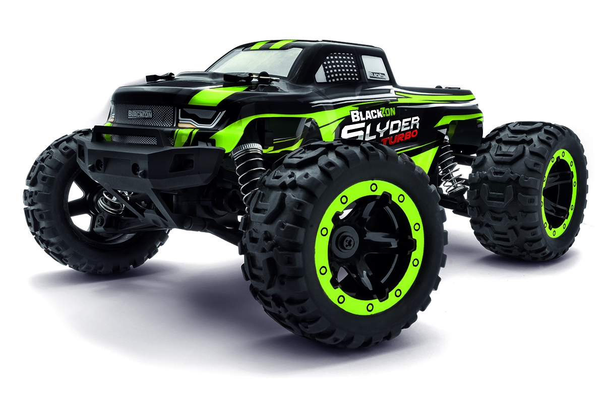 Šestnáctinový RC monster truck je sice malý rozměry, ale velký možnostmi. Tento vůz s pohonem všech 4 kol je připraven čelit skokům a nárazům, a nezaostává ani při nejrůznější akrobacii. Díky 4x4 pohonu, rovnoběžníkovému zavěšení a stavitelným tlumičům zdolá nástrahy každého terénu, a díky krytým převodům a voděodolné elektronice se nezalekne ani kaluží, bláta nebo prachu. Nejen že v zelenočerném kabátku vypadá úžasně, ale doplněn o LED světlomety, je Slyder připraven i k jízdě za zhoršených světelných podmínek nebo v noci. LED světla jsou přibalena k modelu, a podle preferencí jezdce je lze umístit kamkoliv, a poté pouze připojit konektor k akumulátoru.