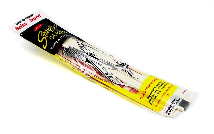Stavebnice celobalsového házedla s rozpětím 305 mm ve stylu ranných prodových stíhaček.
