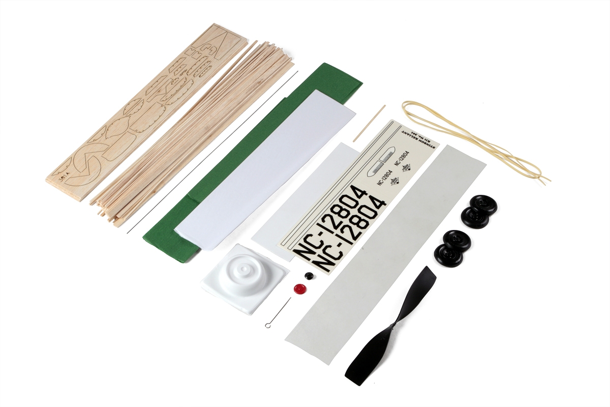 Stavebnice obsahuje: balsové laserem vyřezávané díly, balsové nosníky, vakuově lisované díly (kryt motoru, kryt kabiny...), plastovou vrtuli s hřídelí a hlavicí, gumový svazek (soutěžní guma FAI TAN II), kola, ocelovou strunu na podvozek a další drobné díly, barevný potahový papír, aršík samolepek, stavební plán.