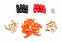 Zlacené 6mm konektory se společným domkem pro 8,4mm2 (8AWG) kabel. Konstantní proud 240A, špičkový 280A. Nepájecí varianta - kabel je zajištěn pomocí dvou imbusových červíků. Balení 8 párů (4 červené a 4 černé).