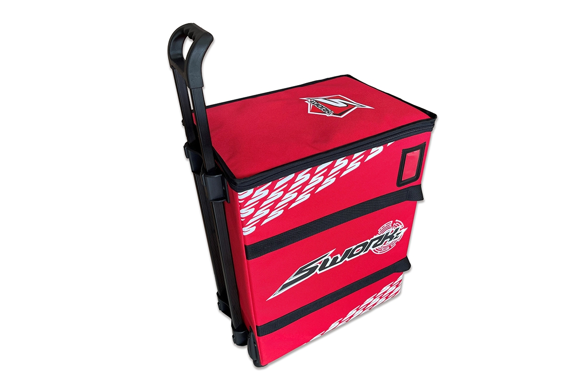 Nová taška SWORKz Racing Trolley má nové designové logo a je vyrobena z vysoce kvalitních materiálů. Zachovává si stejný design se 3 zásuvkami (velikost 1/10 touring) vyrobenými z materiálu PP, zatímco vnější materiál je vyroben jako potápěčské obleky.