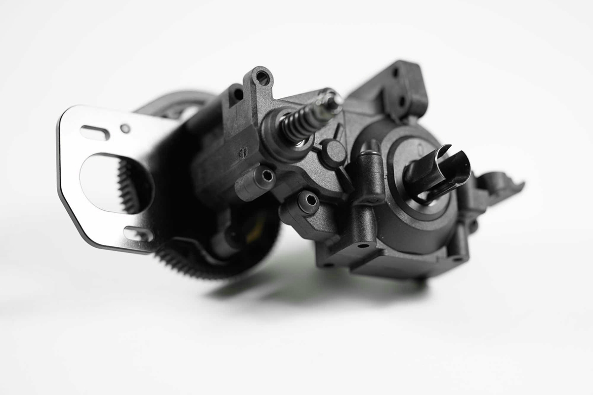 Sada je vybavena systémem rychlé výměny diferenciálu, který lze namontovat ve 3 různých polohách. Zadní ramena jsou šikmá a uchycení zadních tlumičů má různé výškové polohy. Hmotnost převodovky byla optimalizována v dokonalém poměru velikosti a pevnosti.