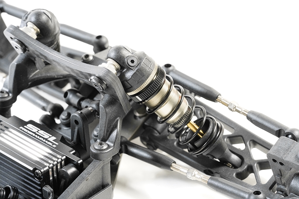 Model S12-2D EVO LIMITED je vybaven zcela novým systémem SWORKz 1/10 Pro-Shock (verze Long). Tlumiče jsou dodávány s novými plastovými víčky tlumičů Emulsion Precision a pístky tlumičů s těsnicími díly. Sada je standardně dodávána se 4mm karbonovými předními parohy verze Dirt a nově navrženými předními C-náboji. Teflonem potažené osy tlumičů zajišťují hladké reakce tlumičů. Pružiny Black Line, které jsou nově navrženy s fixními miskami pružin, jsou součástí standardní výbavy sady SWORKz S12-2D EVO LIMITED.