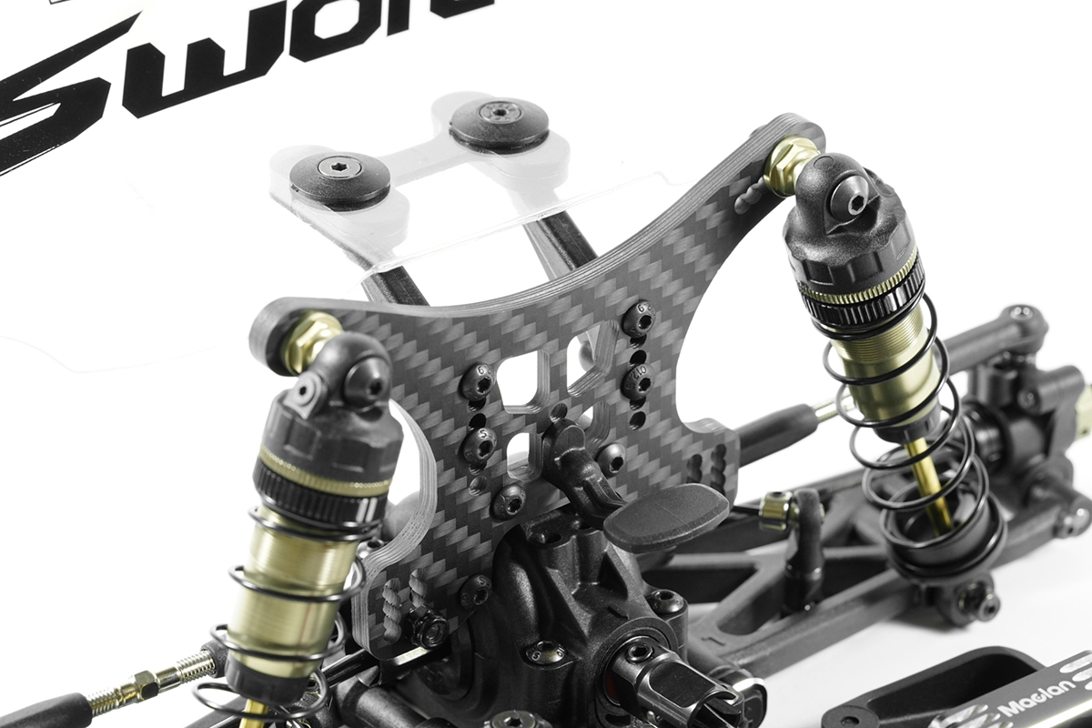 Model S14-4C se dodává se zcela nově navrženými olejovými tlumiči SWORKz 1/10 Pro-Shock (krátká verze). Tlumiče jsou dodávány s novými plastovými krytkami tlumičů "Emulsion Precision", písty tlumičů s těsnicími díly. Podvozek je standardně dodáván s 4mm uhlíkovými parohy/držáky olejových tlumičů pro přední i zadní nápravu. Teflonem potažené písty tlumičů zajišťují hladké reakce tlumičů. Pružiny "Black Line", které jsou dobře navrženy s rotačními pevnými držáky pružin, jsou standardně dodávány v sadě SWORKz S14-4C.