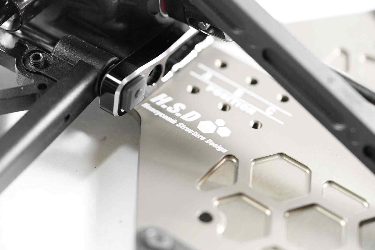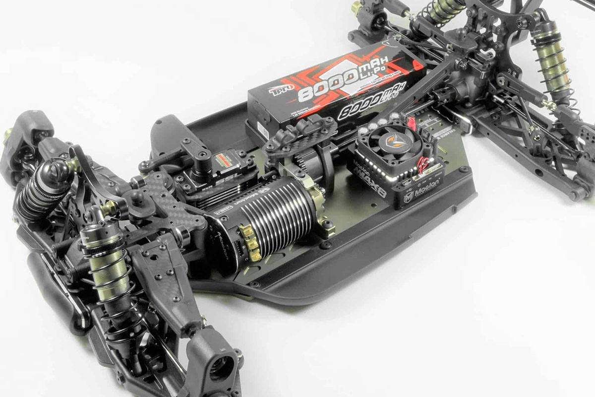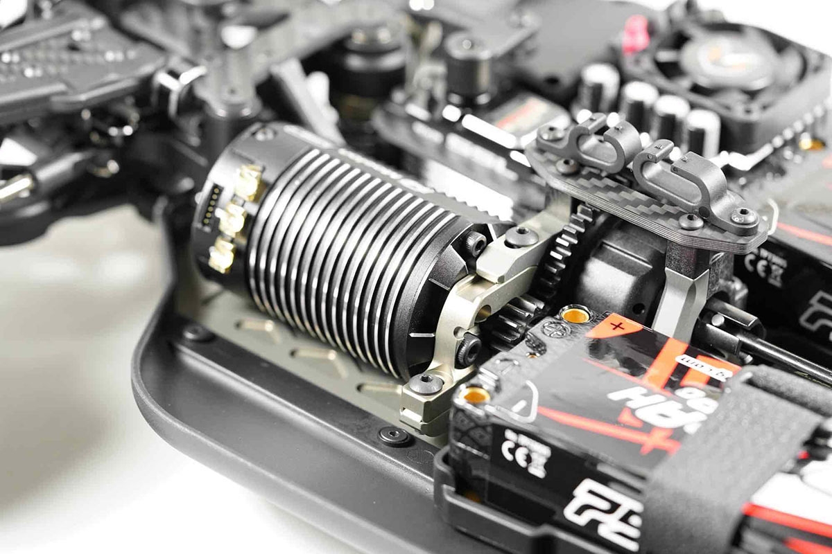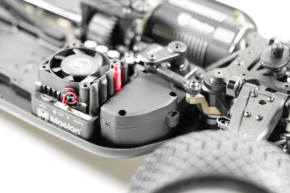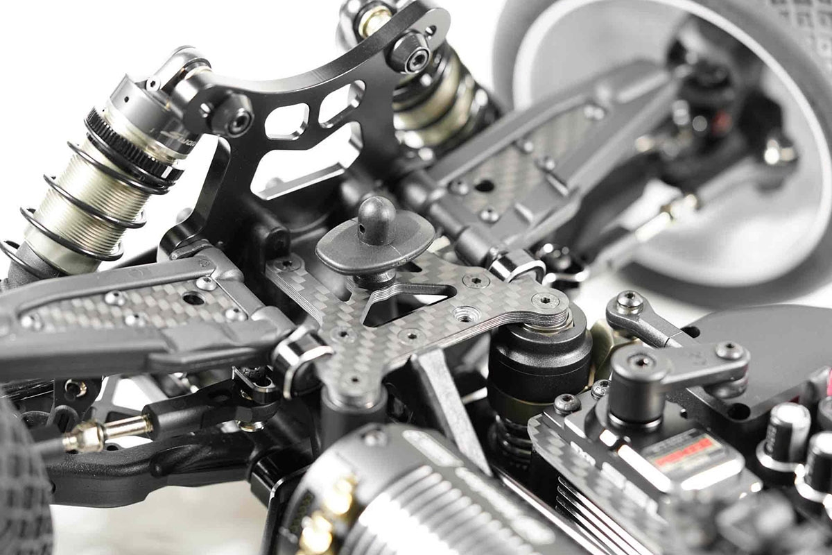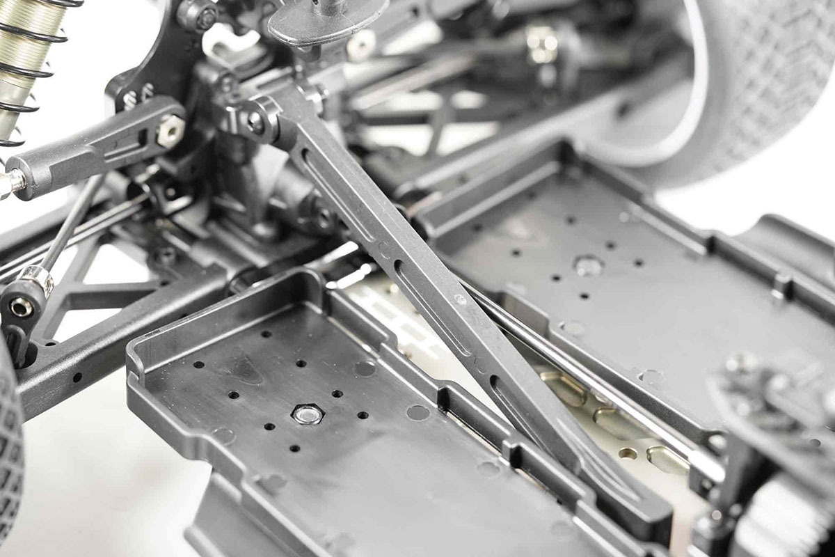 Model S35-4e EVO je vybaven tvrdě eloxovaným a odlehčeným hliníkovým šasi T7075 s novou konstrukcí s krátkým rozvorem kol, která byla dlouhodobě testována našimi továrními piloty, aby byla zaručena nejlepší rovnováha rychlosti předního i zadního zavěšení.