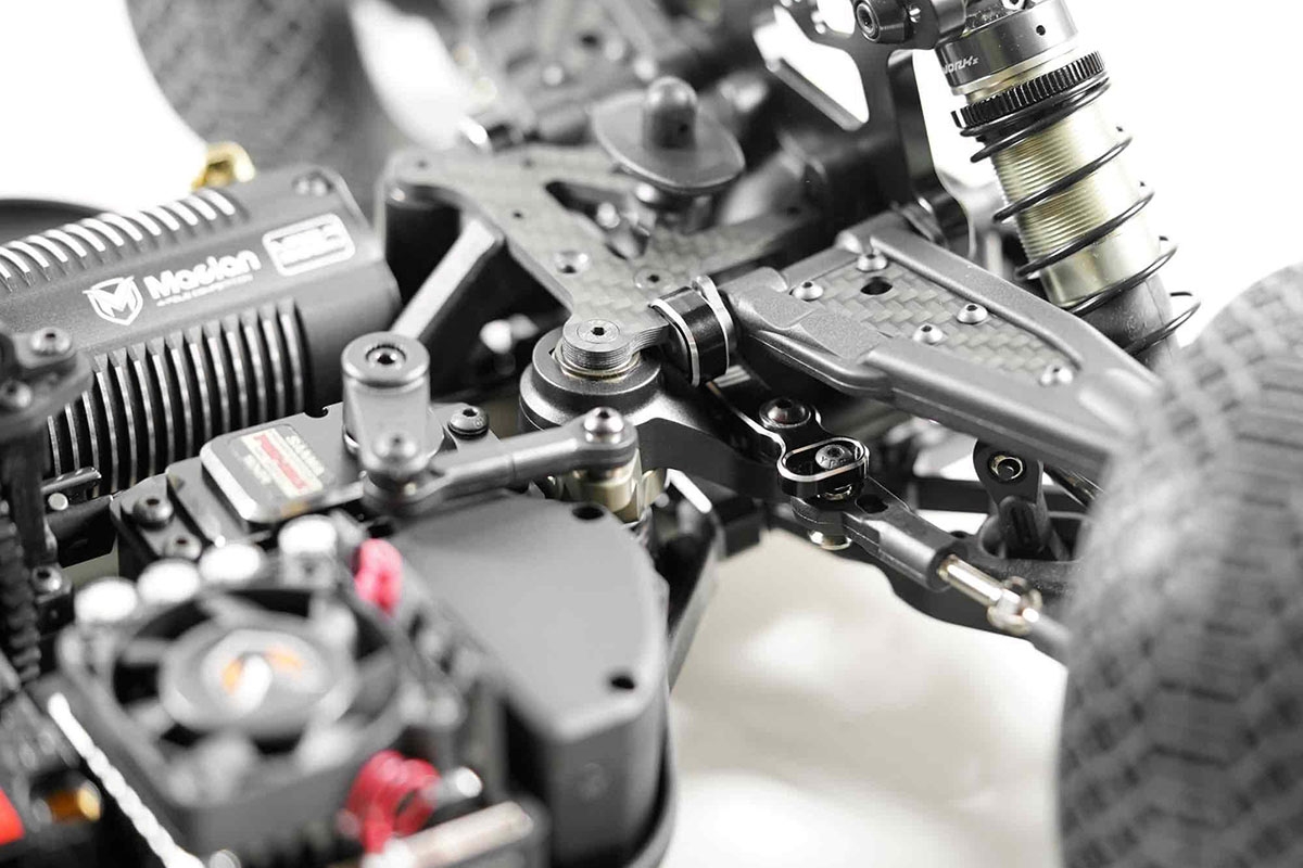 Nový model S35-4e EVO je dodáván se zcela novým systémem řízení Lay-Down Type Steering Bellcrank servo saver. Díky této nové konstrukci Ackerman dává řidiči pocit naprosté kontroly nad vozem S35-4e EVO.