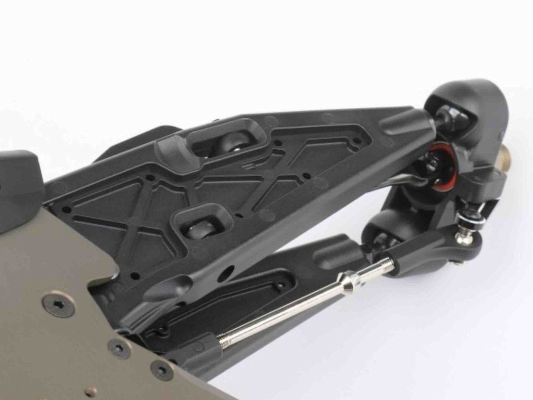 Uchycení ramen, která nyní obsahují čtvercové vložky, umožňují přizpůsobit geometrii vašeho SWORKz S35-T2 tak, aby vyhovovala jakémukoli uspořádání a stavu trati. Přední a zadní ramena jsou vyrobeny z nově vyvinutého kompozitního materiálu a přesně odpovídají nové geometrii podvozku. Stejným způsobem byly přepracovány i bočnice.