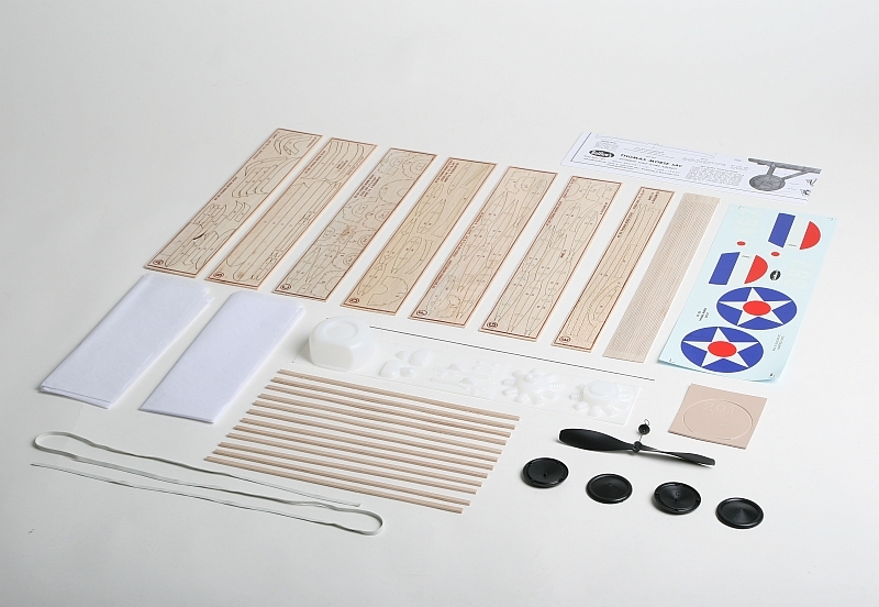 Stavebnice obsahuje: balsové laserem vyřezávané díly, balsové nosníky, předseknuté díly z plastikové překližky, vakuově lisované maketové díly (kryt motoru, maketa motoru...), plastovou vrtuli s hřídelí a hlavicí, gumový svazek (guma 5x1mm), plastová kola, ocelovou strunu na podvozek a další drobné díly, plastová kola, potahový papír, aršík mokrých obtisků, stavební plán.