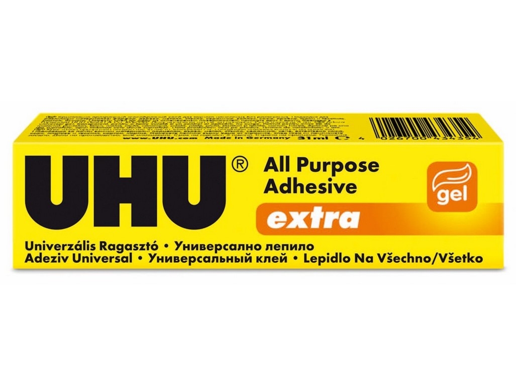 Lepí porcelán, dřevo, kovy, sklo, keramika, plexisklo, plsť, kůže, korek, textil, kartón, papír – UHU univerzální lepidlo lepí prostě všechno. Nevhodné na pěnový polystyren, PP a PE.