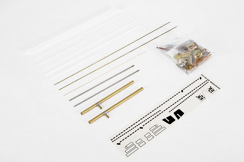 Stavebnice obsahuje: vakuové výlisky trupu, vnitřních přepážek a věže, předseknutá plastová kormidla a poklop trupu, plastové tyčinky, odlévané kovové díly a další maketové příslušenství, 2x lodní hřídel s pouzdrem, 2x dvoulistý lodní šroub 25 mm, sadu samolepek, výkres lodi v měřítku 1:1, obrázkový návod ke stavbě.