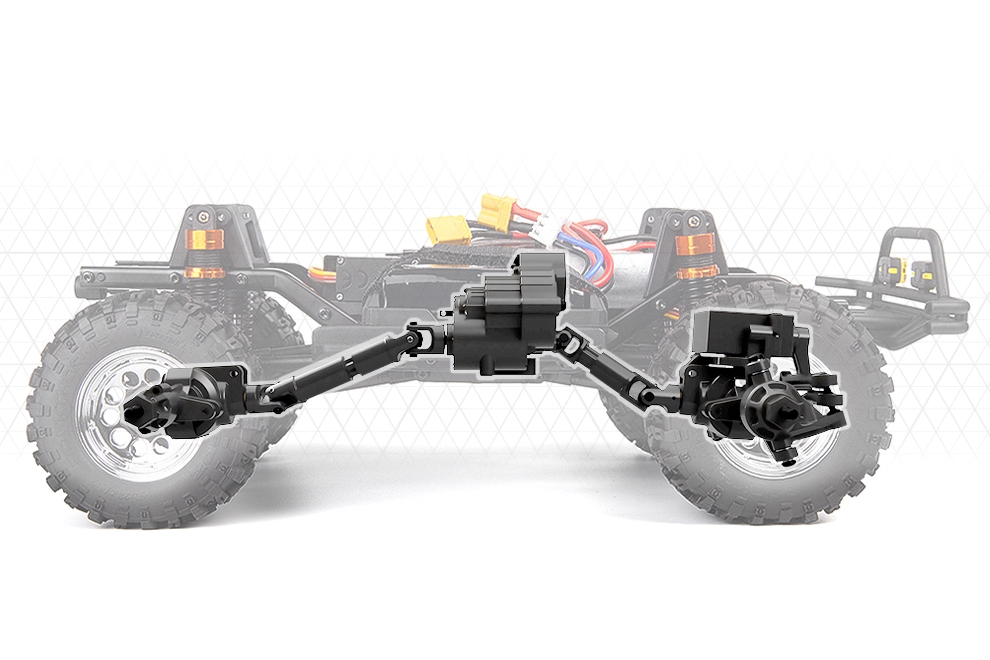 Nízký převod se může pochlubit působivým převodovým poměrem 81,44:1, který poskytuje výjimečné schopnosti při pomalém průchodu na úzkých, technických stezkách a překážkách. A když na rovném, otevřeném úseku potřebujete přidat na rychlosti - nebo prostě jen potřebujete vysoký výkon, abyste se dostali do stoupání - stačí na vysílači přeřadit na vysoký převod, čímž získáte převodový poměr 20,36:1, který vám nabídne pořádnou rychlost.