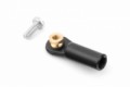 Nylonový pouzdro s kulovým čepem s otvorem 2mm pro pohyb bez tření. M2 závit v nylonovém pouzdře. Včetně ocelové spojky táhla se závitem M2 (KAV0130) a M2 matky.. Balení 2sety.