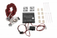 Sada světel se napájí z 2S LiPo akumulátoru (7,4 V) nebo UBEC stabilizátoru napájení 6-8,4 V (napájecí kabel s konektorem JST-XH umožnuje přímo připojit servisní konektor 2S sady). Signálový kabel řídící jednotky se zapojuje do kanálu na přijímači, kterému na vysílači přiřadíte tlačítko nebo momentový přepínač s naprogramovanými polohami -100% a +100%.