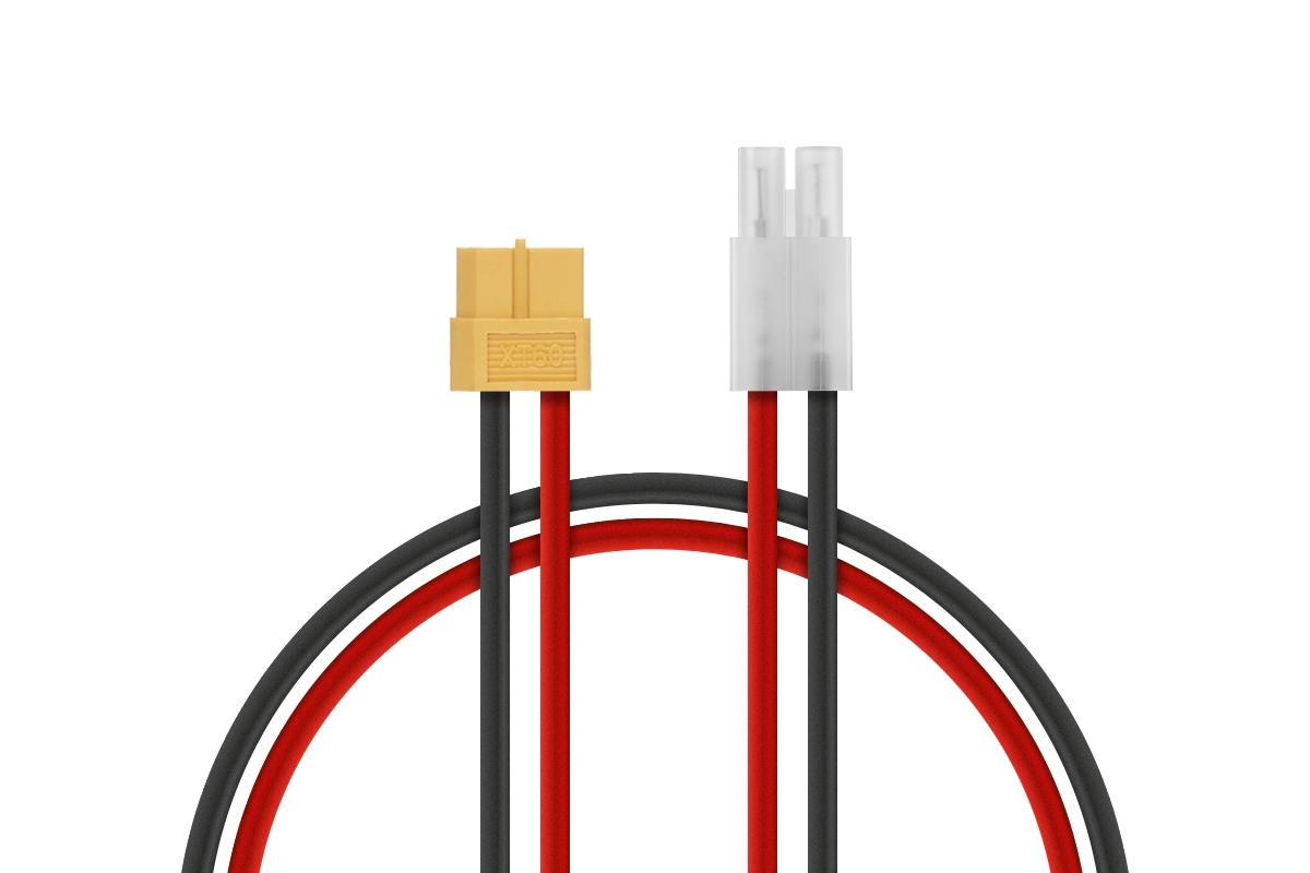 Nabíjecí kabel (reduce) pro nabíječky s výstupním konektorem XT60 k nabíjení akumulátorů s konektorem Tamiya Gold. Délka 25cm, 14AWG.